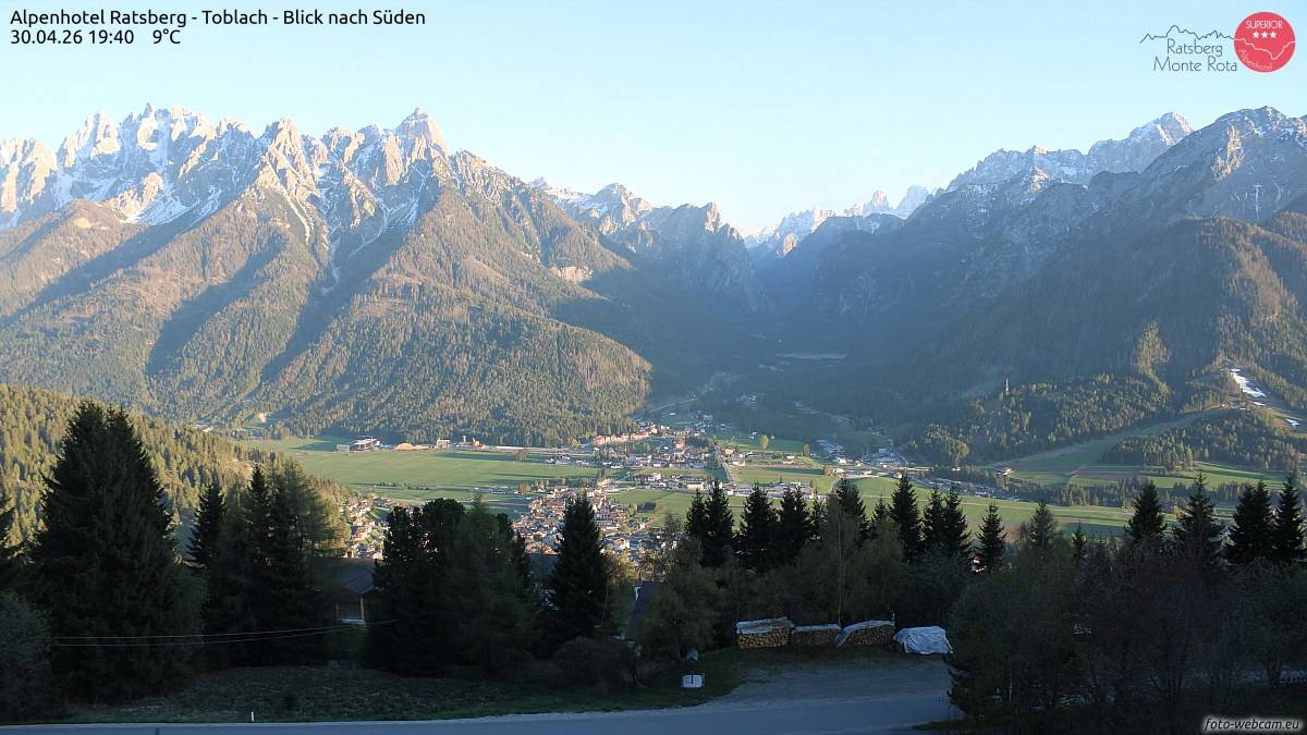 Toblach Tyrol du sud. Webcam in Toblach vom Romantik Hotel Santer. Home - Romantik Hôtel Santer - Hier et aujourdhui.